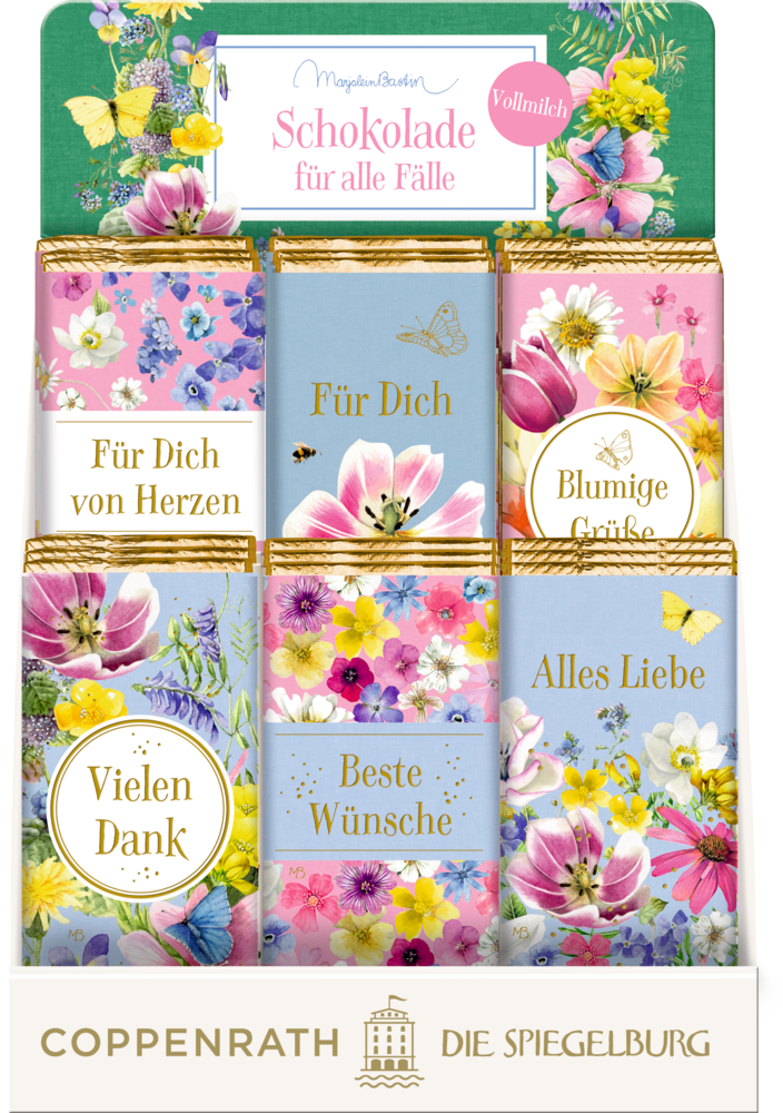 pro StückDie Schokolade Gartenliebe von Die Spiegelburg verbindet süße Genussmomente mit floraler Schönheit. Die zart illustrierten Banderolen zeigen Blumenmotive mit kleinen Botschaften wie „Für Dich“ oder „Vielen Dank“. Eine kleine Aufmerksamkeit für viele Gelegenheiten – ob als Mitbringsel, Tischgruß oder einfach zwischendurch. Enthält ca. 30 g zartschmelzende Vollmilchschokolade. In 6 Designs erhältlich.