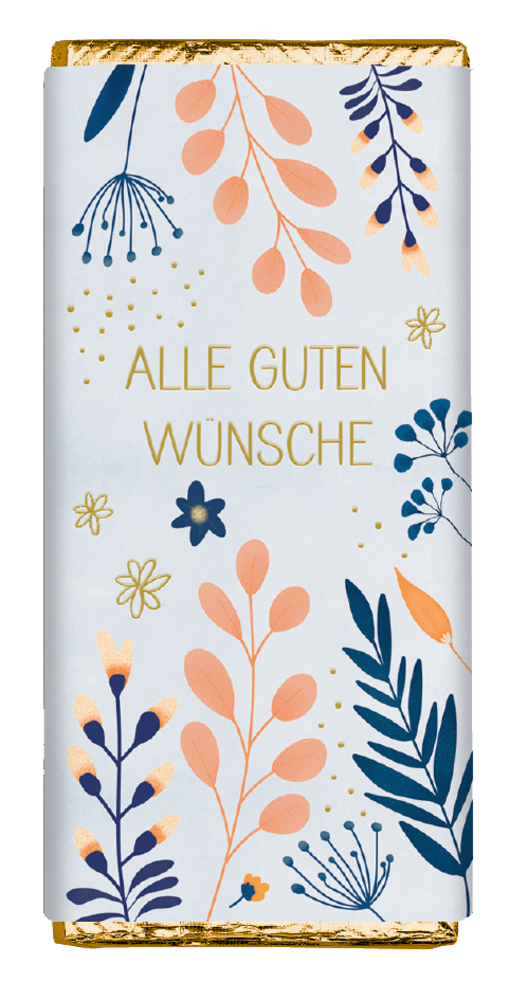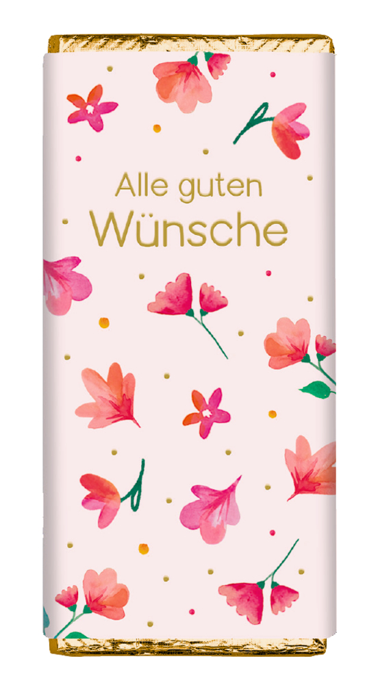 Diese feine 30g Vollmilchschokolade ist nicht nur ein Genuss, sondern auch eine liebevolle Geste: Die stilvoll gestalteten Banderolen sind mit Glück- und Segenswünschen versehen und machen jede Tafel zu einem kleinen Botschafter der Freude. In sechs bezaubernden Designs erhältlich, eignet sie sich als süßer Gruß zu vielen Anlässen – von der Taufe bis zum Geburtstag, vom Abschied bis zum Dankeschön.