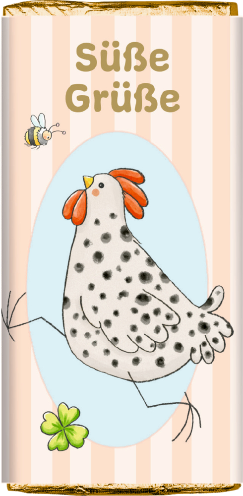 Die Schokolade „Süße Ostergrüße“ von Die Spiegelburg ist eine süße Überraschung im Osternest. Mit hochwertiger Vollmilch-Schokolade und fröhlich gestalteter Verpackung. Ca. 30 g. In 6 Designs erhältlich.
