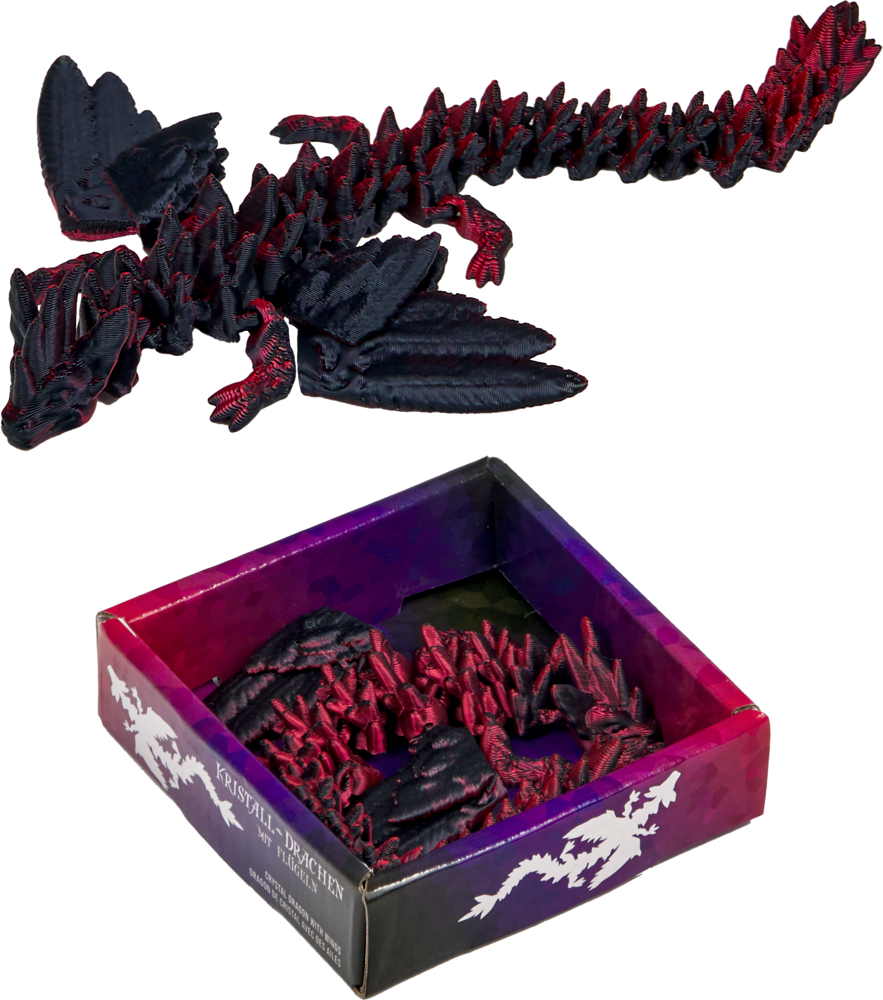 schwarz/rot, Kristall-Drache mit Flügeln - Kristalltier