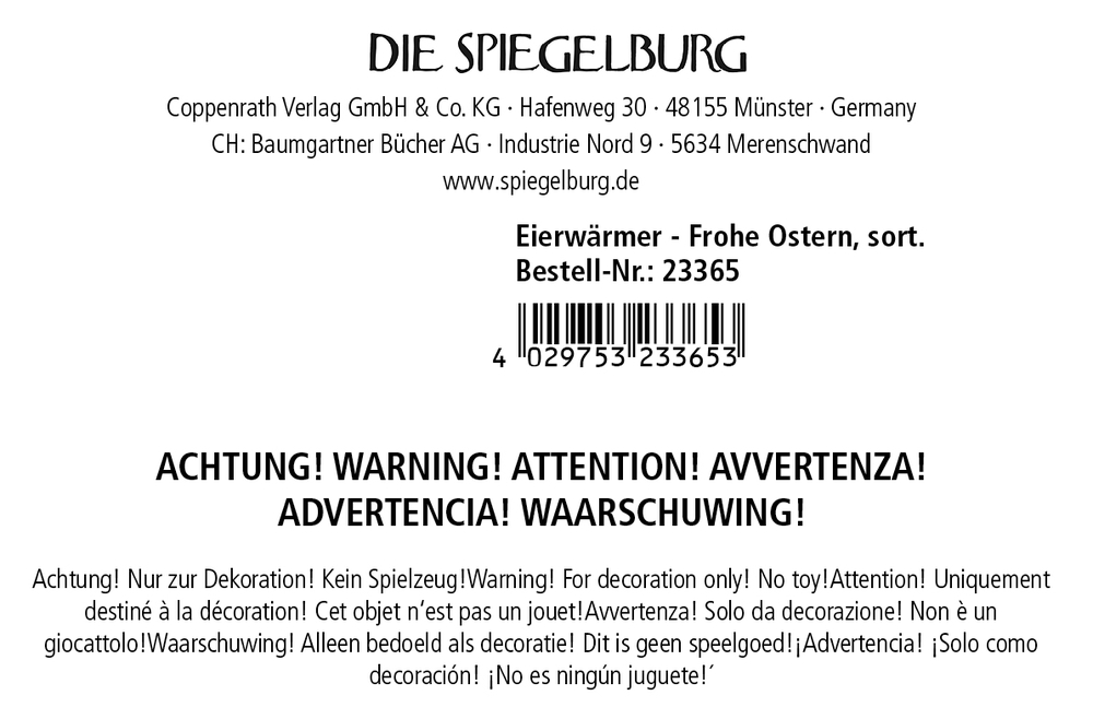 - Warnhinweis: Achtung! Nur zur Dekoration! Kein Spielzeug!