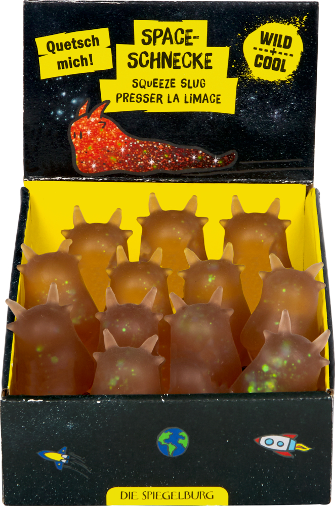 Die Space-Schnecke – Wild + Cool von Die Spiegelburg ist das galaktische Fidget Toy für coole Kids! Beim Drücken quetscht sich die glitzernde, bunte Masse im Inneren nach außen und sorgt für einen faszinierenden Effekt, der einfach Spaß macht. Ob zum Stressabbau, Herumspielen oder als verrücktes Mitbringsel – diese Schnecke ist ein echter Hingucker und liegt mit ca. 10 cm Länge angenehm in der Hand.