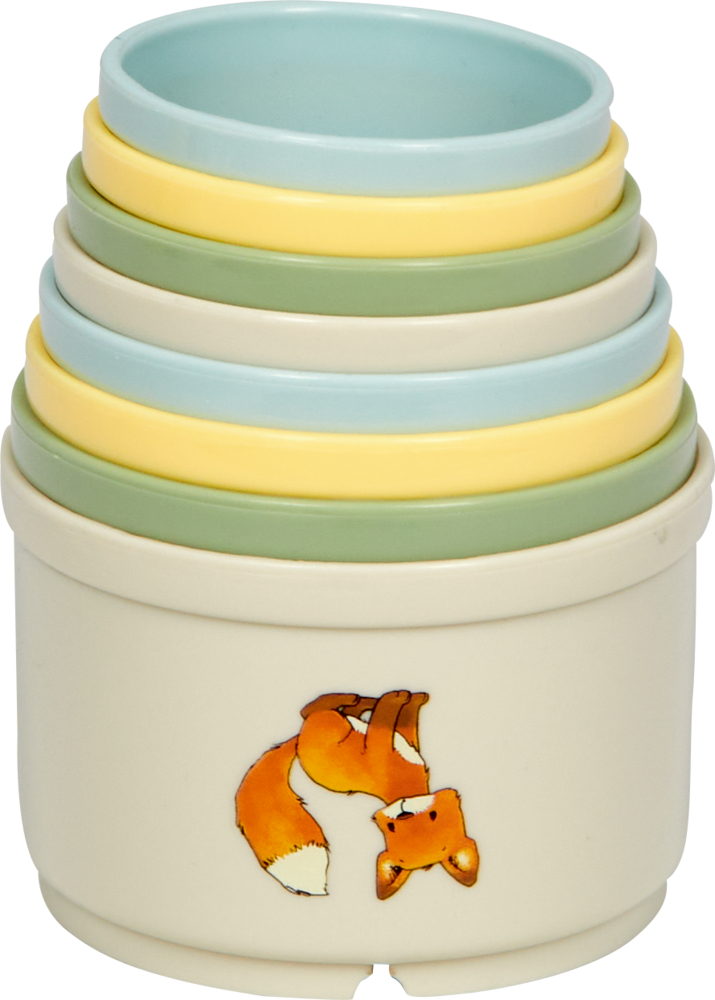 Bunter Spielspaß im Turmformat! Die Stapelbecher von Die Spiegelburg aus der Kollektion Joelle Tourlonias fördern mit niedlichen Tiermotiven und sanften Farben spielerisch Motorik, Hand-Augen-Koordination und erstes Größenverständnis. Ob hoch hinaus stapeln, ineinander stecken oder mit Wasser und Sand befüllen – die acht liebevoll gestalteten Becher regen zum kreativen Spielen und Probieren an. Das kompakte Format von ca. 8 x 8 x 34,5 cm ist ideal für kleine Hände – zu Hause oder unterwegs.