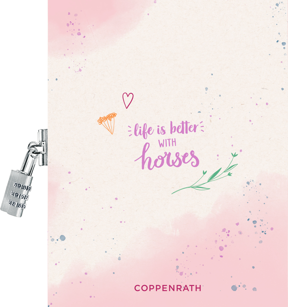 Hochwertiges Tagebuch mit 96 linierten Seiten Charmante und detailreiche Pferde-Illustrationen Robustes Zahlenschloss zum Schutz der Privatsphäre Perfektes Geschenk für Pferdefreunde Idealer Begleiter für den Alltag und besondere Momente