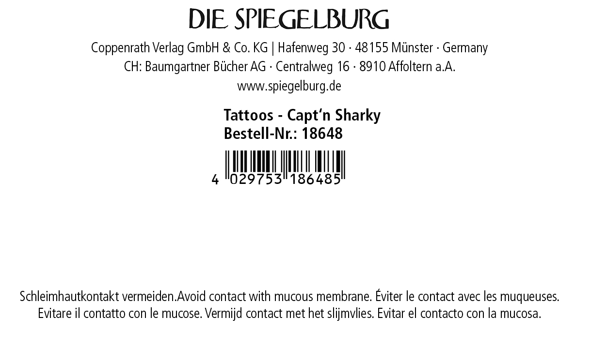 Coole Piraten-Tattoos für alle Freunde von Capt'n Sharky. Hautfreundlich, leicht anzubringen und mit Seife abwaschbar.