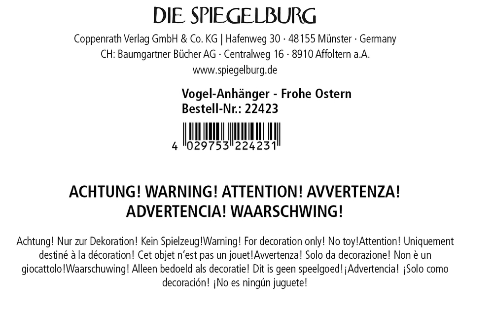 - Warnhinweis: Achtung! Nur zur Dekoration! Kein Spielzeug!