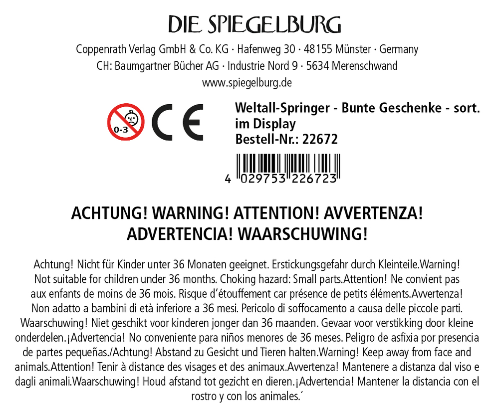 Der Weltall-Springer von Die Spiegelburg kombiniert kreatives Design mit einer spannenden Funktion: einfach den Saugnapf nach unten drücken, kurz warten – und schon springt der Weltall-Springer mit Schwung in die Luft! Mit einer Größe von ca. 11 x 5 x 5 cm ist er kompakt und eine tolle Idee für den Kindergeburtstag oder die Schultüte.