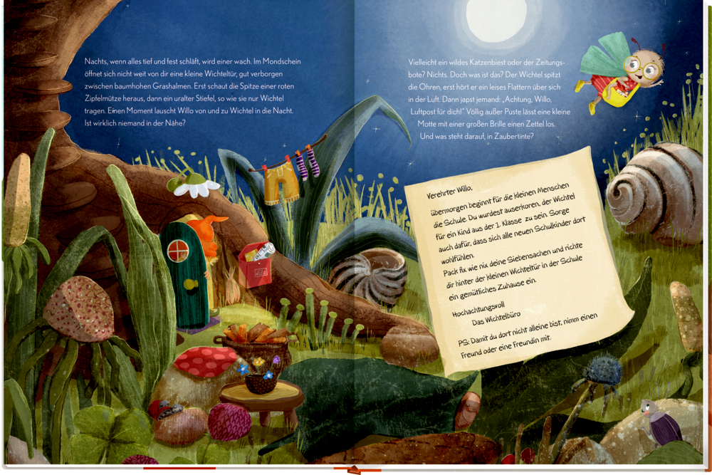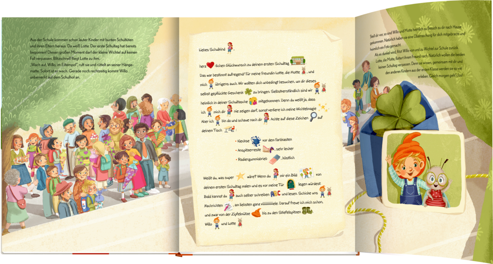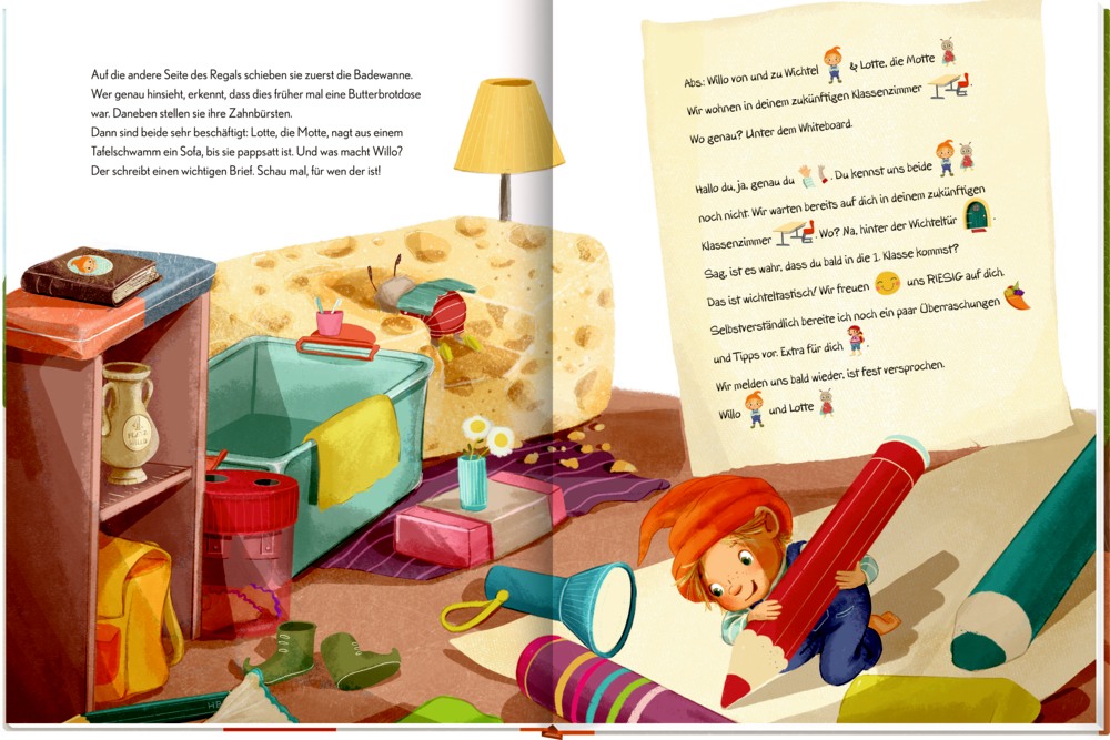 Willo von und zu Wichtel zieht mit seiner Freundin Lotte, der Motte, in eine Grundschulklasse ein, um Erstklässlern den Schulanfang zu erleichtern. Die beiden entdecken gemeinsam die Schule und helfen den Kindern beim Ankommen. Willo schreibt Briefe, macht Mut – und hat sogar eine Überraschung dabei.