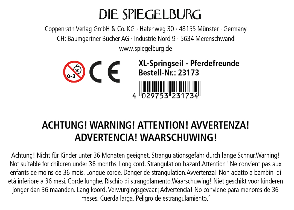 - Warnhinweis: Achtung! Nicht für Kinder unter 36 Monaten geeignet. Strangulationsgefahr durch lange Schnur.